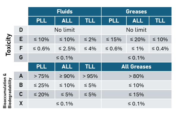 The commission has created the Lubricant Substance Classification list (i.e., LuSC) with the intention to assign ratings to said categories based on the fluids’ or greases’ biodegradability, bioaccumulation and aquatic toxicity levels to assist manufacturers with choosing approved components and additives (Table 1).